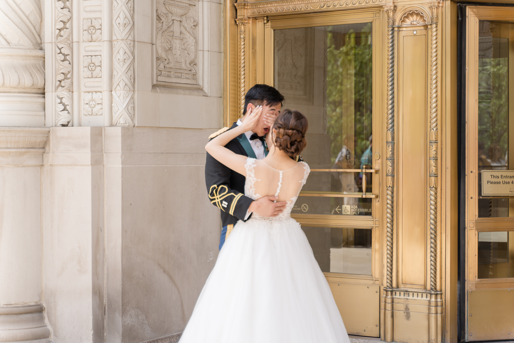 I had so many favorite parts of Ashley and Mike’s Chicago, Illinois wedding that it would take more than one blog post just to write about them. But I have to tell you about how touching their first look at the Wriggly Building was! Mike had the sweetest reaction to seeing Ashley for the first time, and I LOVED documenting their tender first moments together on their wedding day. Everyone around these two can tell just how much Mike loves Ashley. I mean, he cried during their first look AND when she walked down the aisle during their wedding ceremony (but you’ll have to wait until part two to see that!)