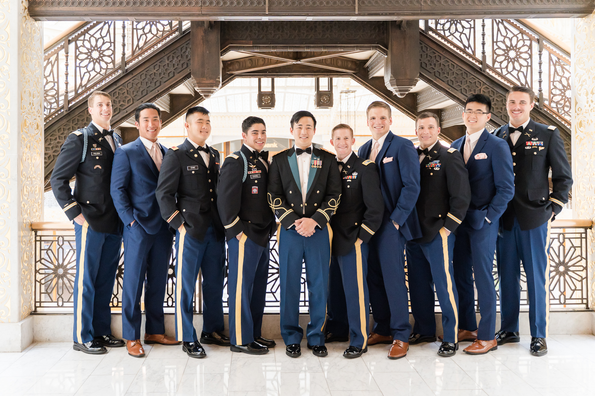 After the first look, we took bride and groom portraits as well as bridal party photos in front of the Wriggly Building and on the river with the Chicago Skyline in the background. This location is perfect for the Chicago - loving city couple! Next, we took the limo to the Rookery for the rest of our bridal party and bride and groom photos. The Rookery has the coolest staircases! We also took a few last bride and groom photos in front of the Drake Hotel when we got back to the Drake to prepare for Ashley and Mike’s first wedding ceremony. I can’t wait for you all to see the rest of the wedding day!