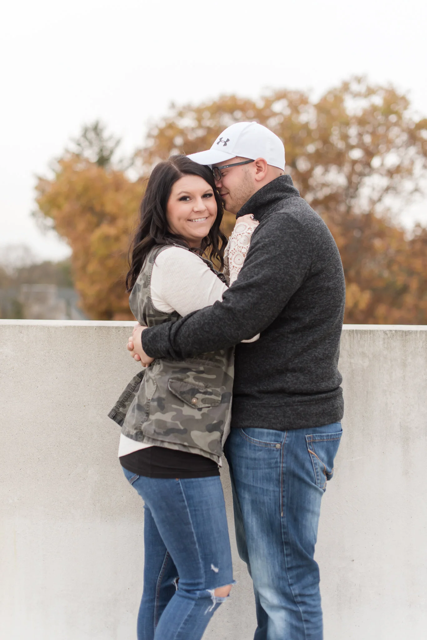 I’ve been looking forward to James and Laken’s fall engagement session in Broad Ripple for what feels like SO LONG! I first met Laken when she was a bridesmaid in Alex and Amanda’s Puerto Vallarta destination wedding. Laken ended up getting engaged to James not too long after that, and I was so honored when she asked me right away to photograph her wedding. Since Laken and James LOVE the fall season, they’re having an October wedding next year. They’re actually getting married on Halloween. It’s super cool that Halloween is on a Saturday next year. They even thought of the cutest wedding hashtag: #AllensSayIBoo. How sweet is that?!