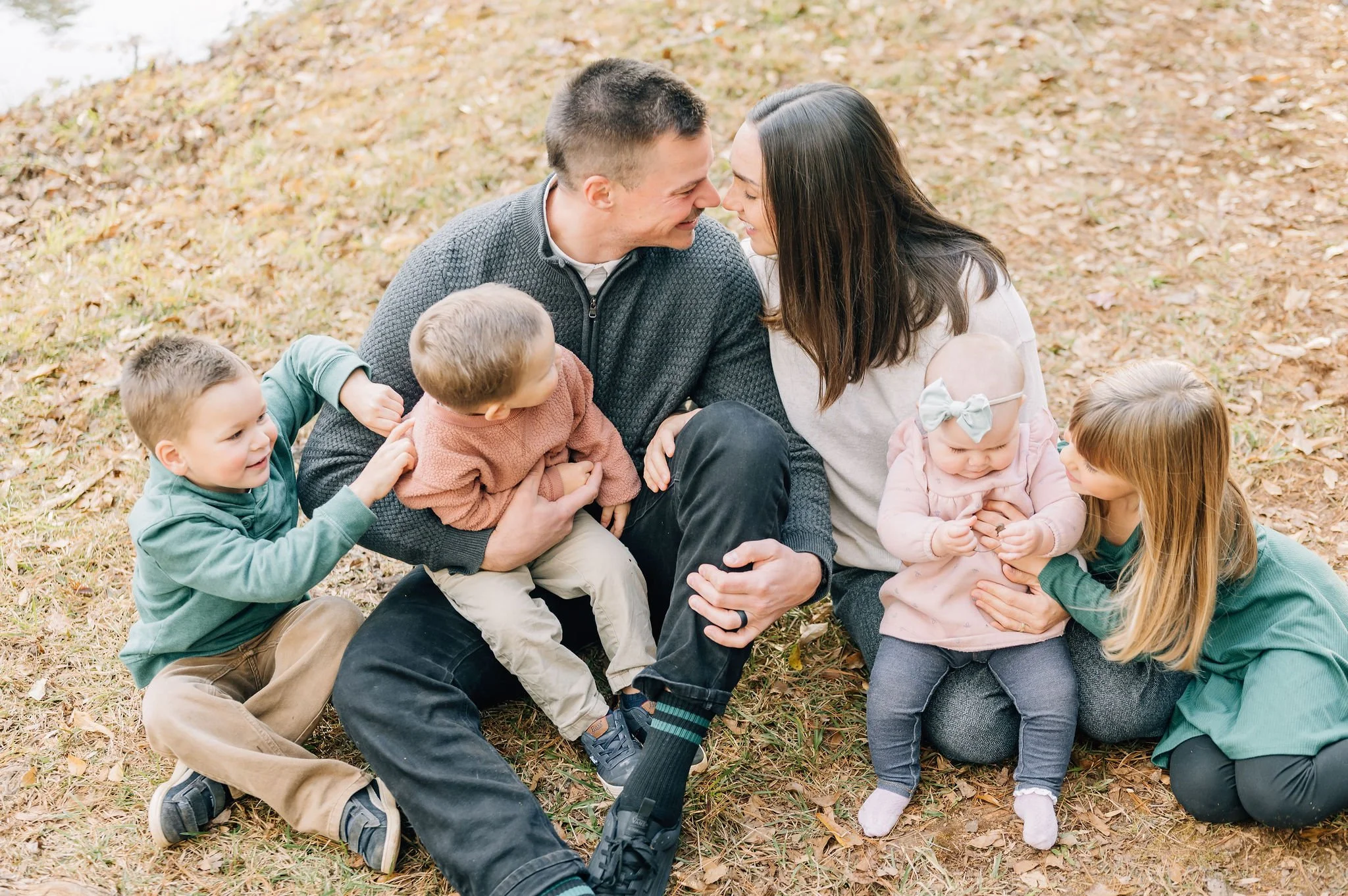 This was the second time I’ve gotten to photograph this sweet family here in Travelers Rest in this same beautiful wooded pond. The first time was when I took their very first family photos as a family of six. That was back in the spring while the daphodils were in bloom!