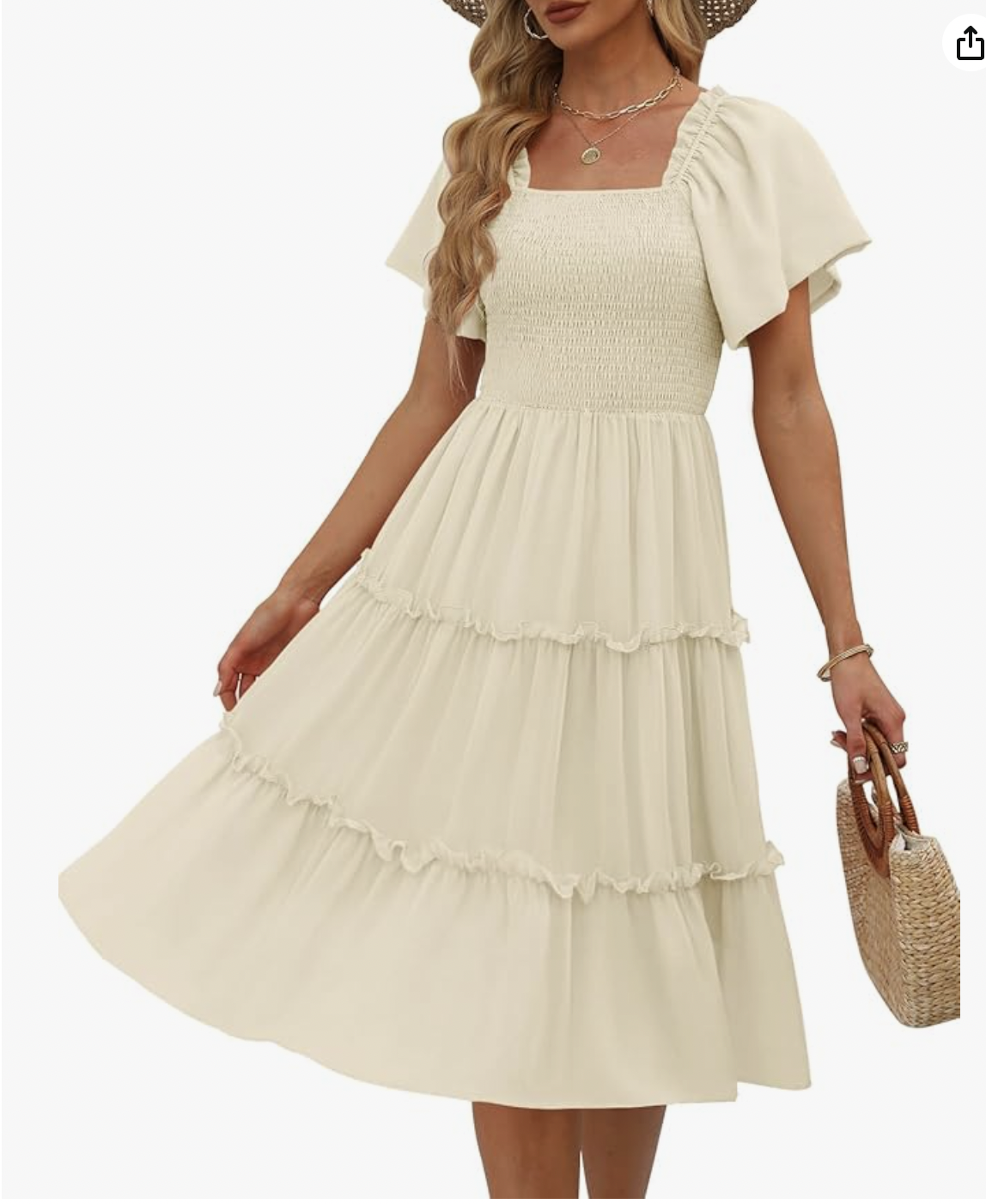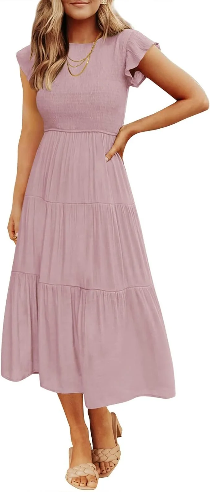 This smocked midi dress is super flattering and can fit a range of sizes. It’s bump friendly and nursing friendly.