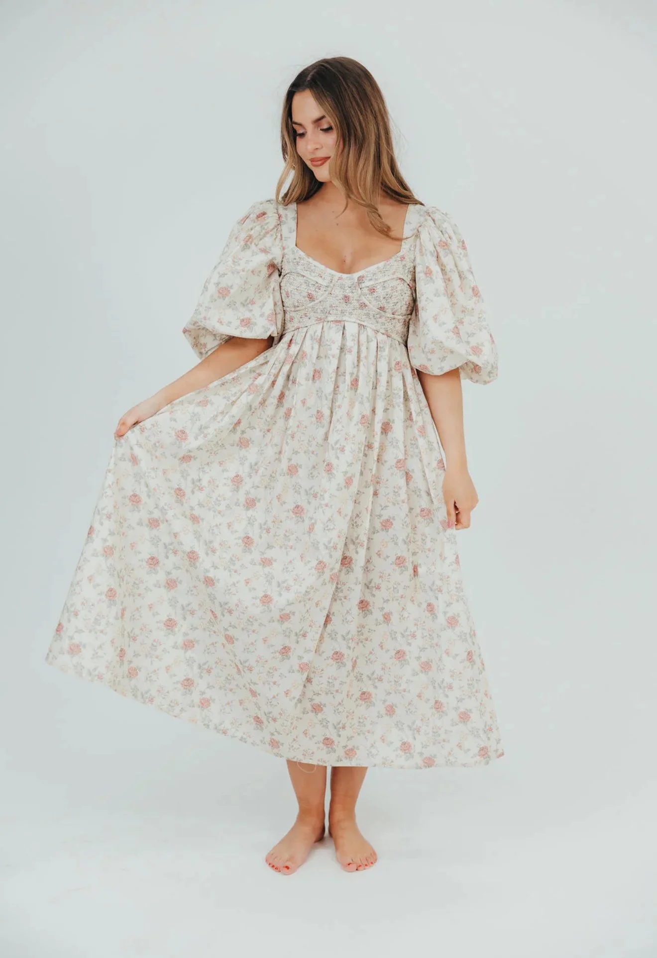 Adorable feminine floral midi dress! Bump and nursing friendly! Beautiful for postpartum or any day!