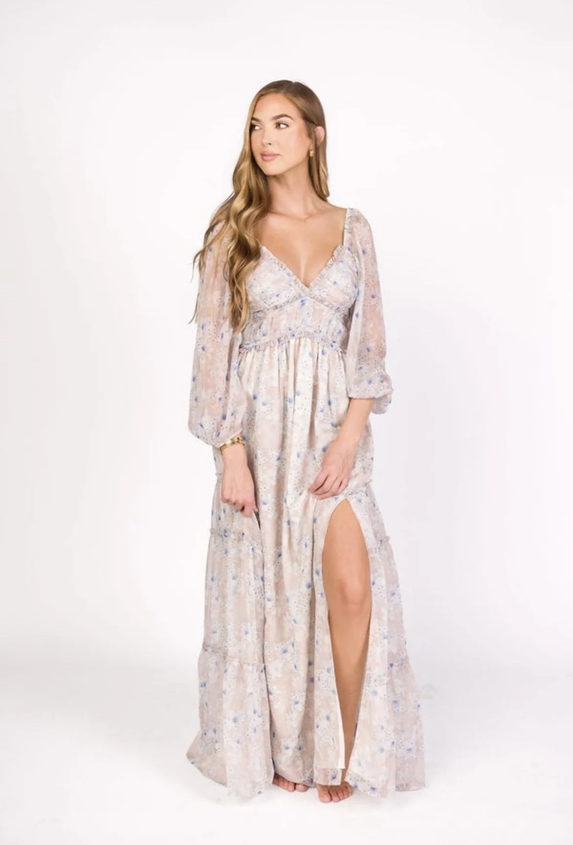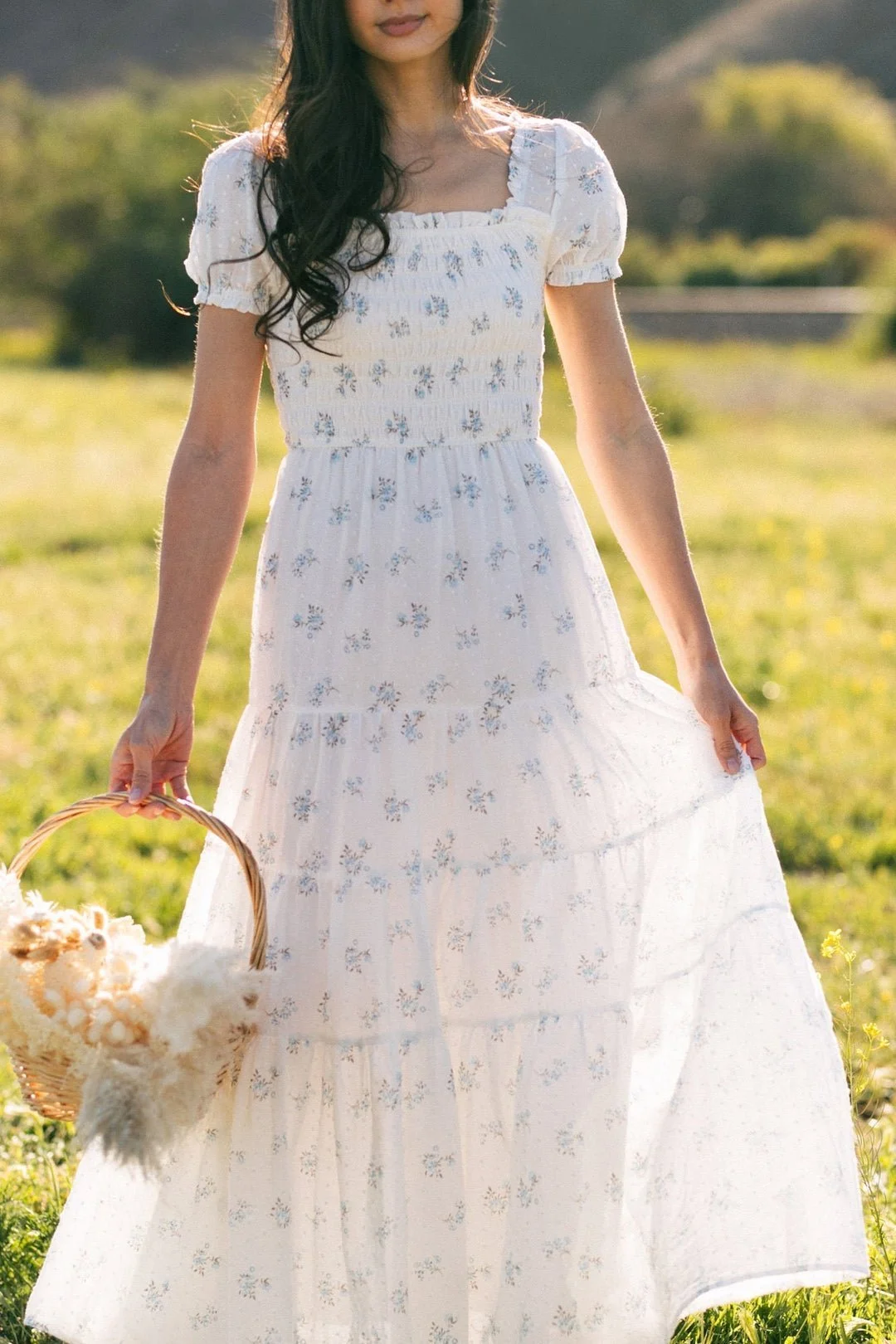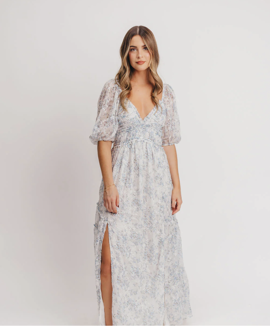 Imagine walking through the English countryside at dawn. You stop to pick some wildflowers, and a slight breeze ruffles your charming gown. Obviously you'd be wearing the Colette maxi dress, and you would *literally* be the picture of perfection. Featuring a flattering v-neckline, eyelet accents, and a full, flowy skirt, this stunning maxi will make you feel beautiful in every sense of the word. Bump friendly and nursing friendly! You can wear something under this if you prefer a more modest look!