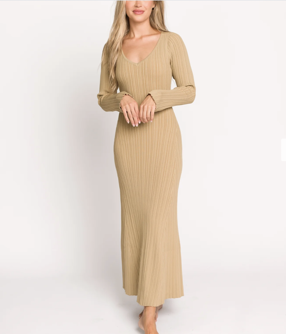 The Keaton Maxi Dress features a fitted silhouette and V-neckline give it a feminine flare, while its extra soft ribbed sweater knit can be dressed up or down with ease. This beautiful dress is effortless and flattering, perfect for any occasion. It’s bump friendly and nursing friendly! Perfect for fall or Christmas photos. I would not recommend this dress for newborn photos. Flowy dresses are best for those early postpartum days.
